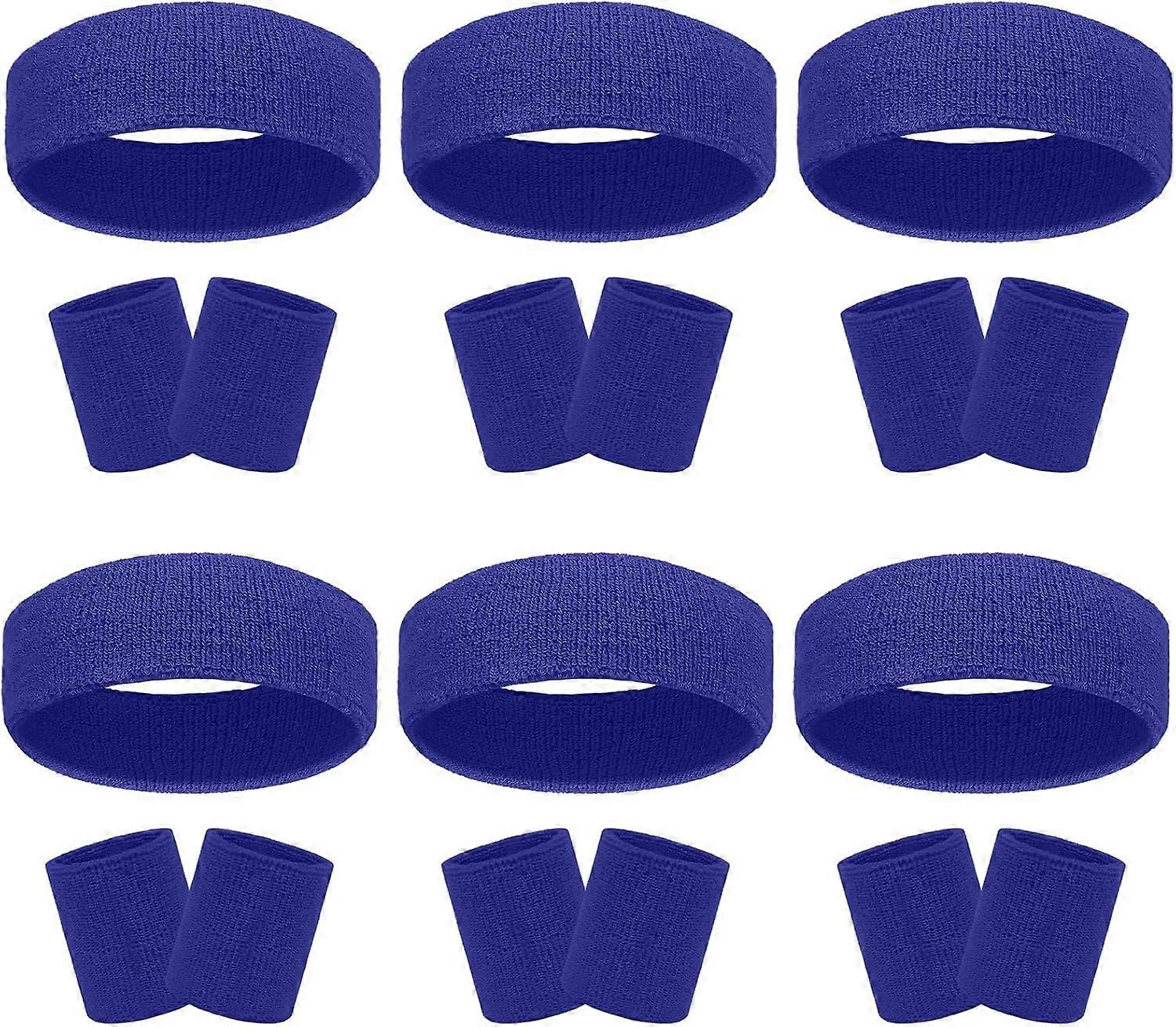 18-Piece Sweatband Headband Wristband Set, Sweatband Headband Wristband, Dark Blue