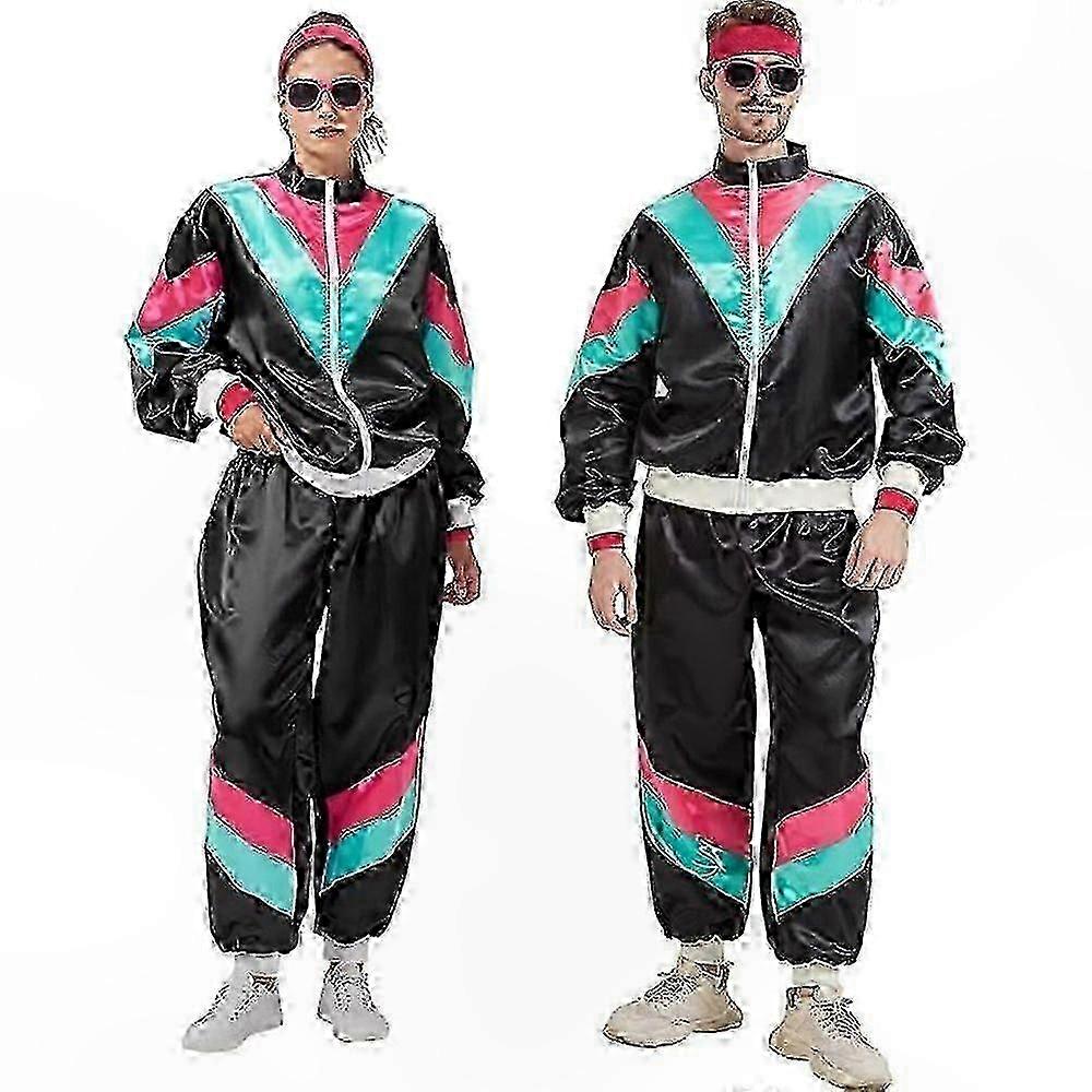 Retro 80s 90s Tracksuit Set for Men and Women Hip Hop Inspired Windbreaker Outfit for Couples