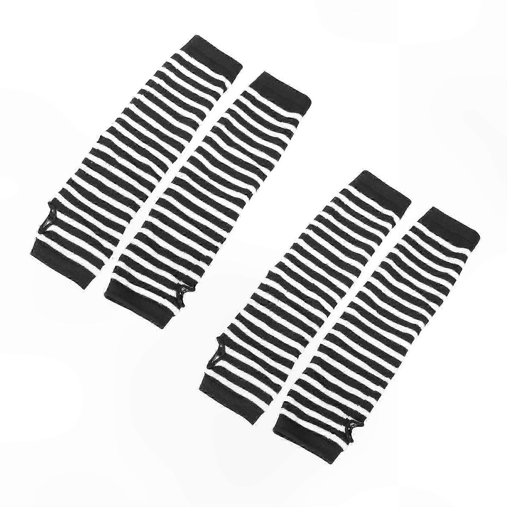 Women's Acrylic Arm Warmers with Fingerless Design in White and Black (2 Pairs)