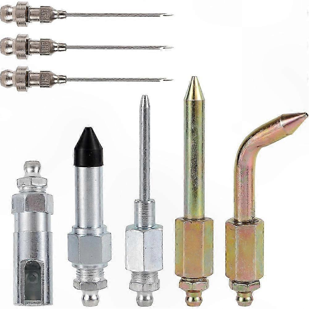 8-Piece Grease Accessory Set with Nozzles, Needle Dispenser, Rubber Tip, and Adapters for Various Applications