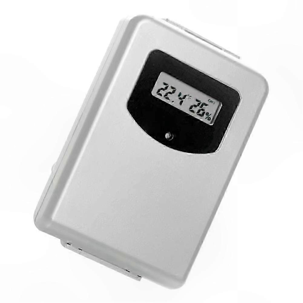 Wireless Frequency: 433 MHz Temperature Measurement Range: -20°C to 70°C Humidity Measurement Range: 20% to 95% Temperature Resolution: 0.1°C Humidity Resolution: 1% Temperature Accuracy: ±1°C Humidity Accuracy: ±5% Four Weather Icons on Main Unit: Sunny, Cloudy, Partly Cloudy, Rain Day Display on Main Unit in Seven Languages: English, Italian, French, Dutch, Spanish, Danish, German Main Unit Supports Up to Three Remote Sensors Simultaneously Color: Silver Material: ABS Package Contents: 1 x Wireless Thermometer Sensor (2 x AAA batteries not included)