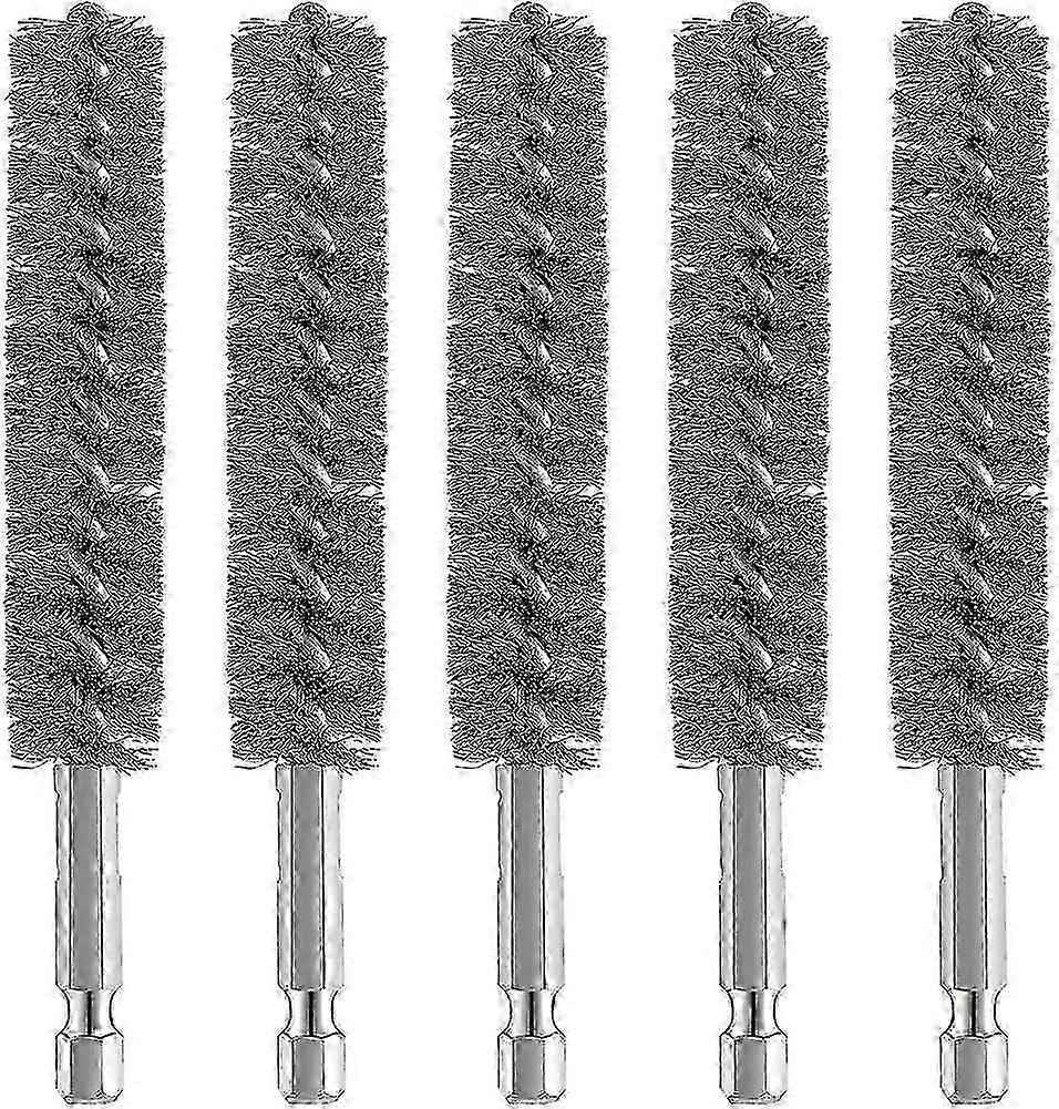 5pcs Stainless Steel Bore Brush Wire Brush For Drill With Hex Shank Handlesilver myi