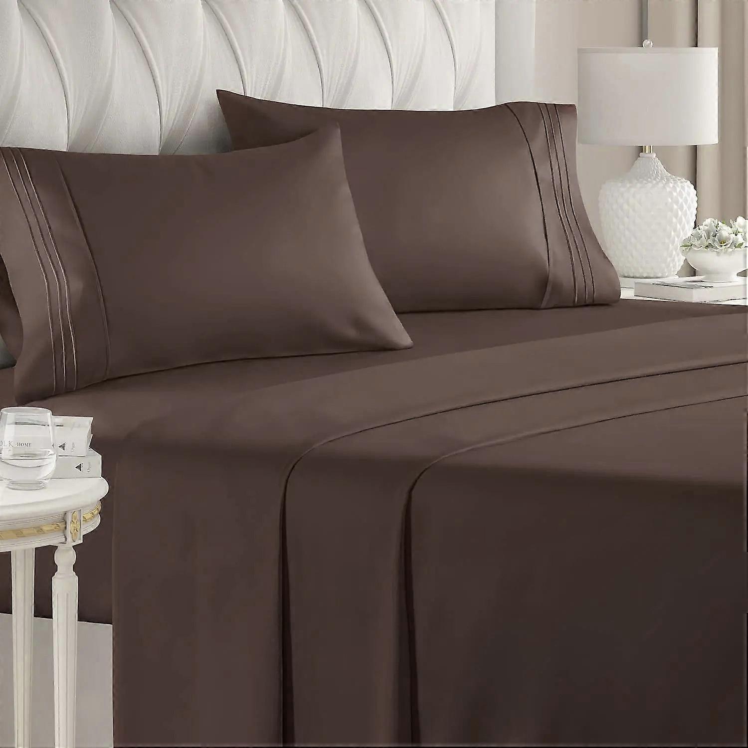 Battilo Double Bed Sheets 4Pieces Set Fitted Flat Sheet with Pillowscase Luxury Microfiber King Queen Full Twin Size Bedding Set