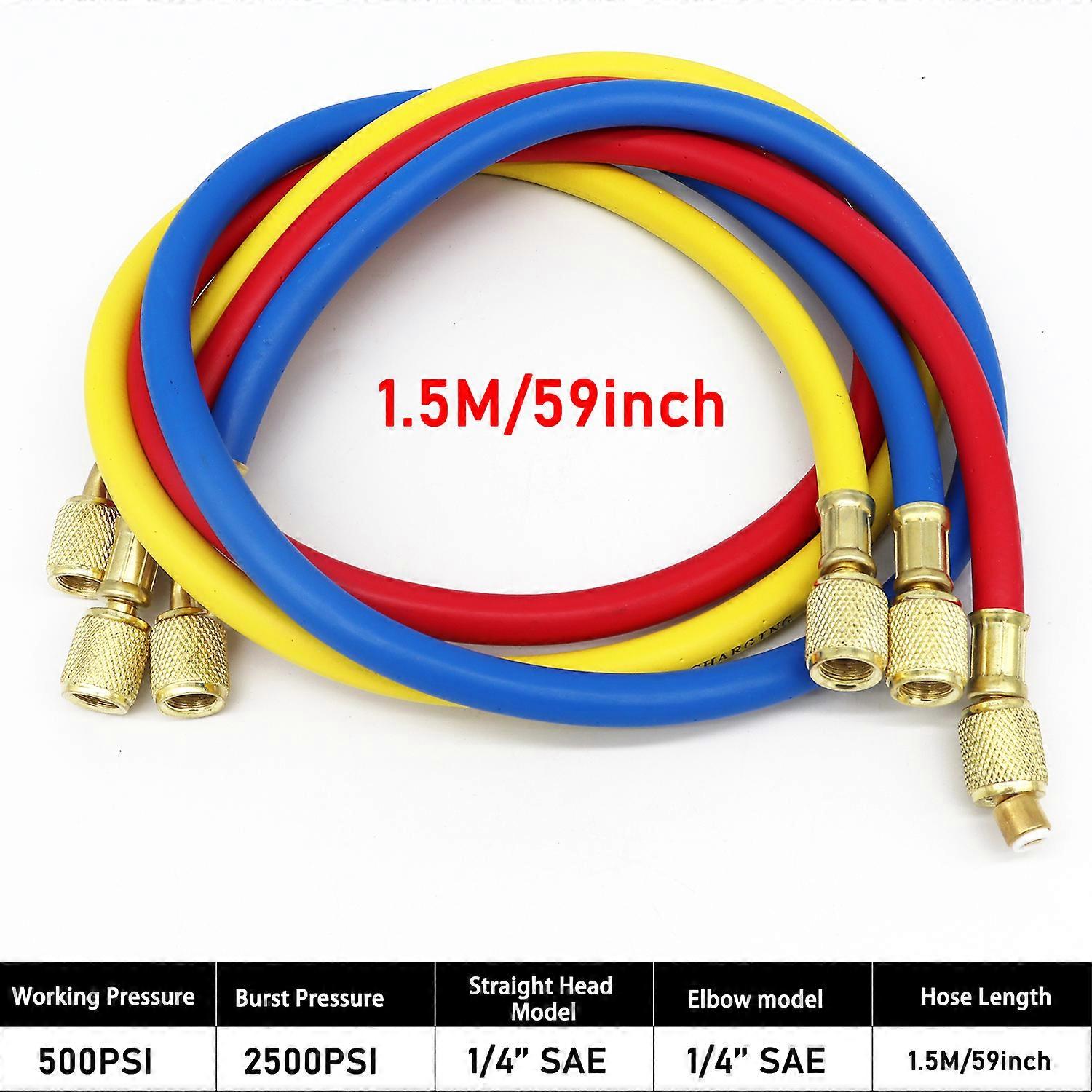 0.9M-1.8M AC Charging Hose Tube Kit Hose Low Loss Fittings for R134A R12 R22 Refrigerant Air Conditioning Manifold Gauge