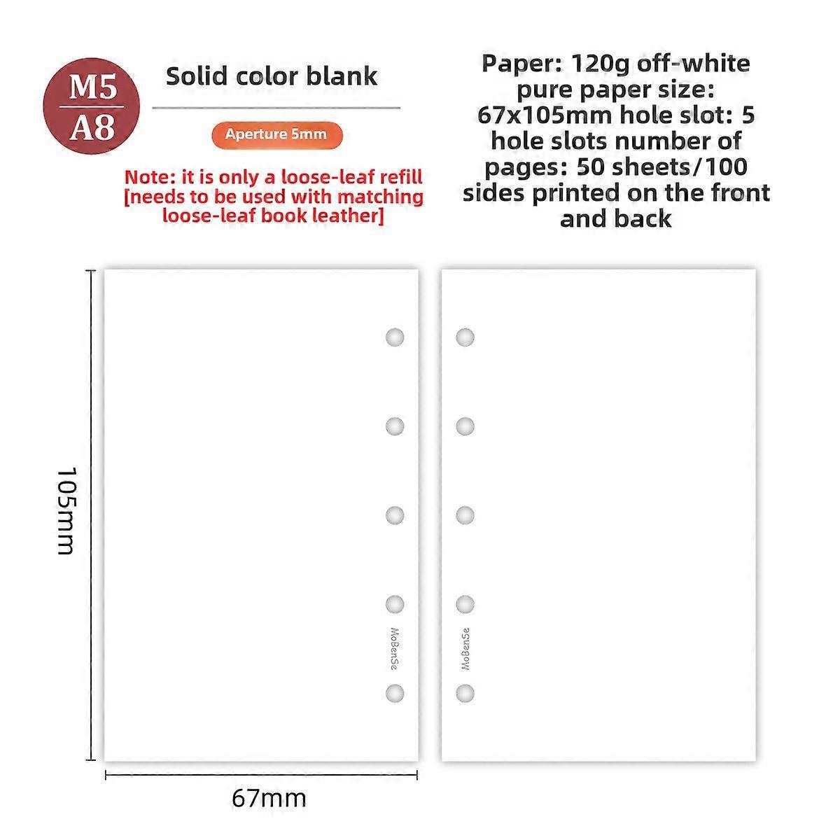 M5 50Sheets Colorful Loose Leaf Notebook Refill Spiral Binder Inner Page Weekly Monthly To Do Line Grid Inside Paper Stationery