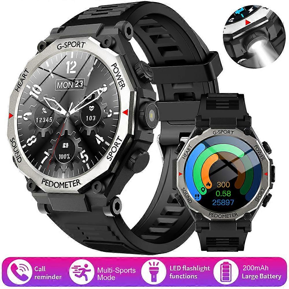 LAXASFIT Smart Watch Military Men 360*360 HD Screen Flashlight Health Monitor Heart Rate BT Call Android IOS Smartwatch