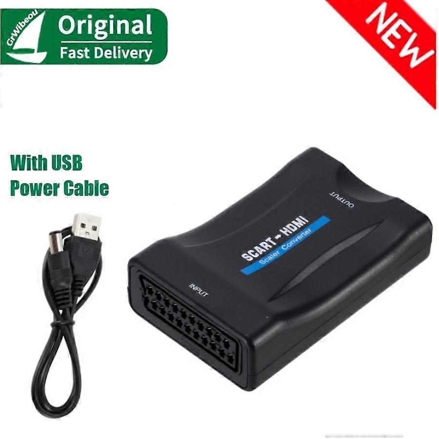 1080P SCART To HDMI-compatible Video Audio Upscale Converter Adapter for HD TV DVD for Sky Box STB Plug and Play DC Cable