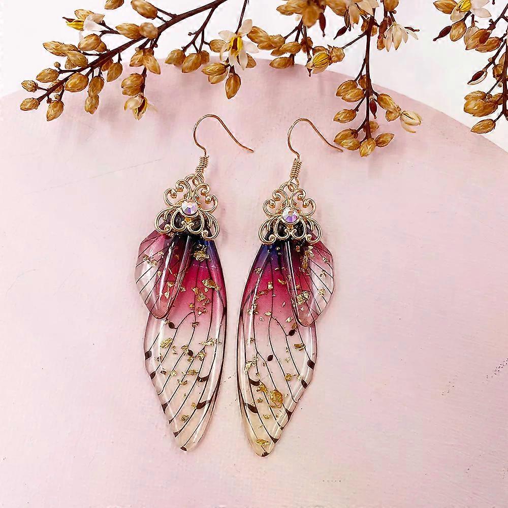 Fashion Handmade Femme Wing Drop Earrings Purple Resin Fairy Cicada Wings Earrings Rhinestone Purple Earrings Vintage Jewelry