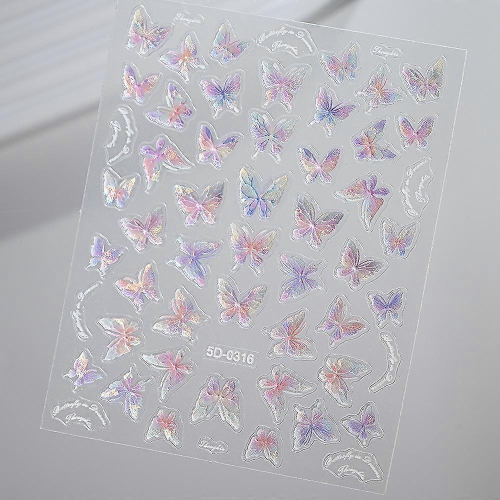 1pcs Fairy Shell Pink Butterfly Nail Stickers 5D Embossed Aurora Butterflies Nail Art Decals Self Adhesive Manicure Charms 0317