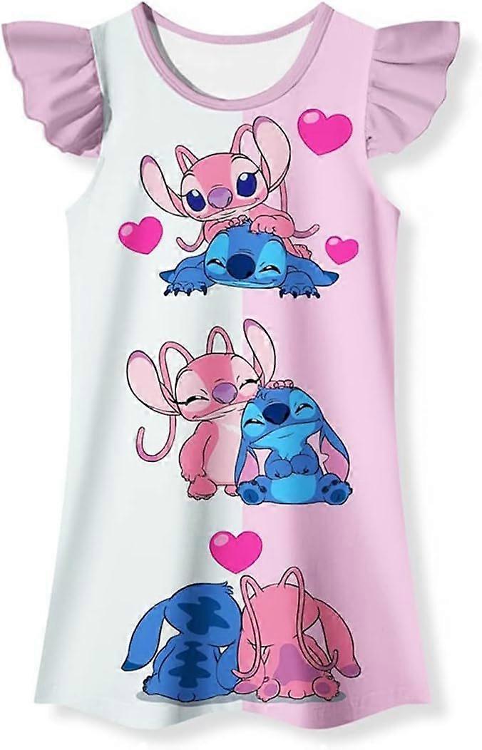 New Disney Stitch Cartoon Girls' Sleeping Skirt Comfortable Role Playing Anime Children's Flying Sleeve Dress Hot Selling