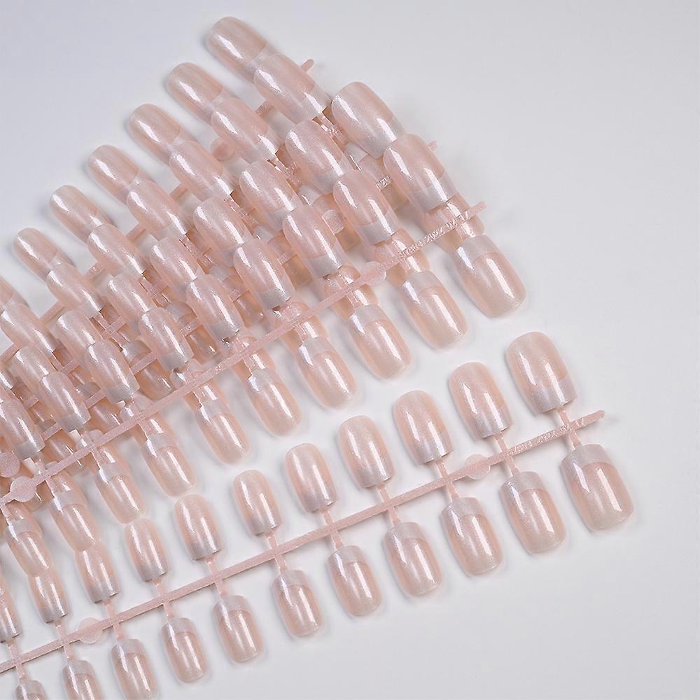 120pcs Glossy Nude Glitter French False Nails Medium Square Aurora White French Press on Nails Full Cover Pre-applied Fake Nail