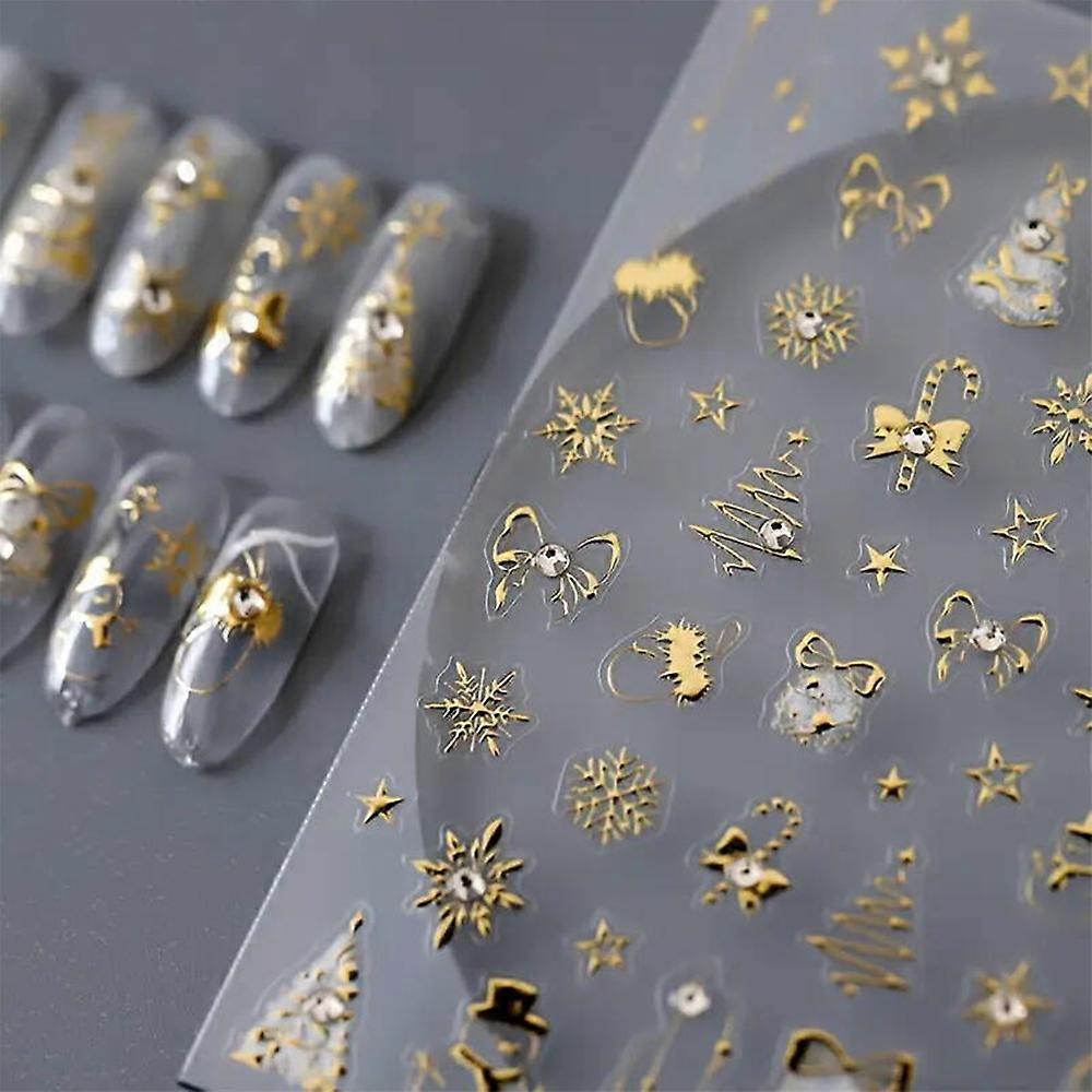 5D Embossed Christmas Tree Snowman Nail Stickers Shiny Bronzing Gold Snowflakes/Bow Nail Decals Self-Adhesive Xmas Manicure Deco