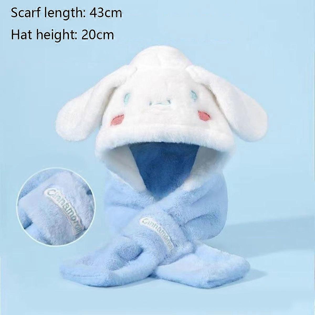 Sanrio Cartoon Anime Kuromi Children's Hat Scarf all-in-one Winter Ear Protection Velvet Thickened Warm Hooded Scarf