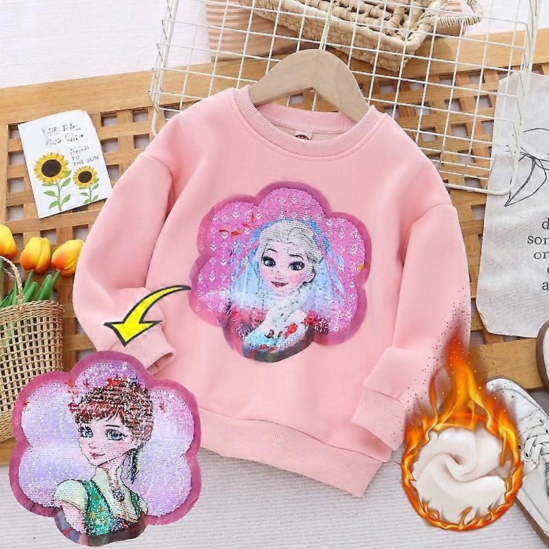 New Best-selling Anime Cartoon Frozen Winter Girls' Fleece Hoodie with Color-changing Sequined Top Thickened and Fleece