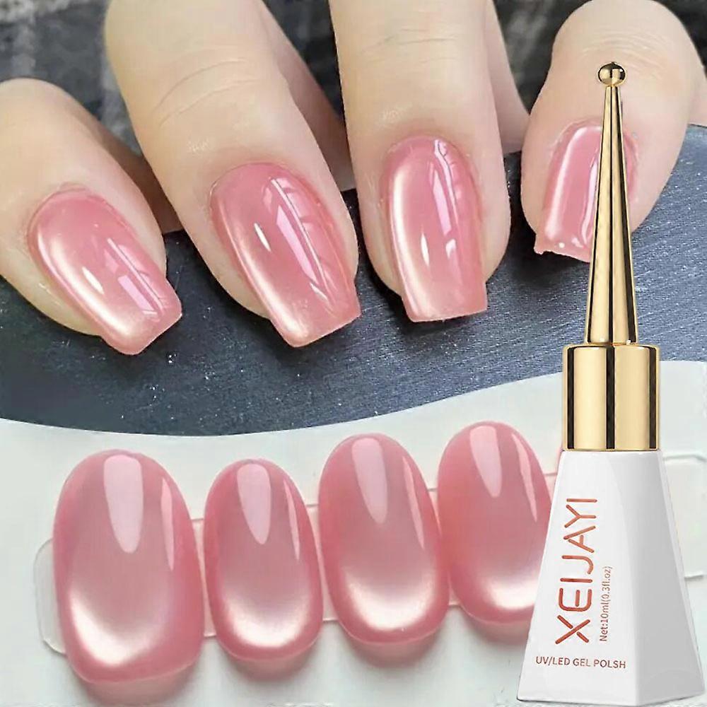 10ml 3D Pink Cat Eye Magnetic Gel Nail Polish Pink Jelly Glass Bead Cat Eye Nail Polish Soak Off Semi-Permanent Nail Varnish 5@