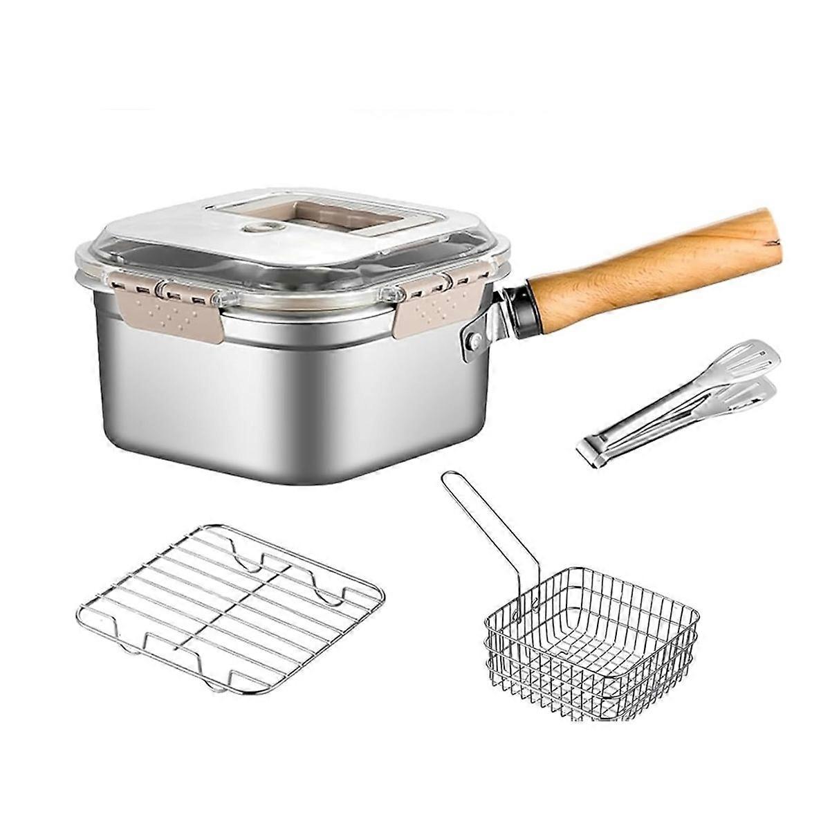 MultiFunction Frying Cooker Set Portable Stainless Steel Deep Fryer Pot with Basket Tongs Oil Drip Rack Household Frying Pan Set