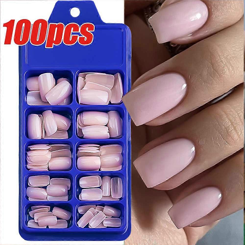 100Pcs Light Pink Press on Nails Short Medium Square Fake Nail Tips 10 sizes Reusable Full Cover False Nails Finger Decoration
