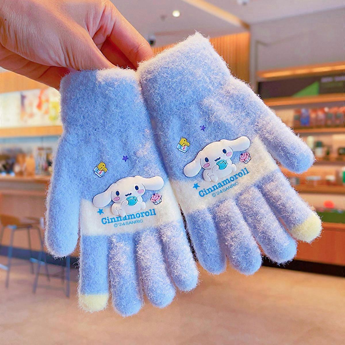 MINISO Cute Cartoon Sanrio My Melody Kuromi Children's Cold-proof Warmth Thickened Winter Finger Gloves Christmas Gifts