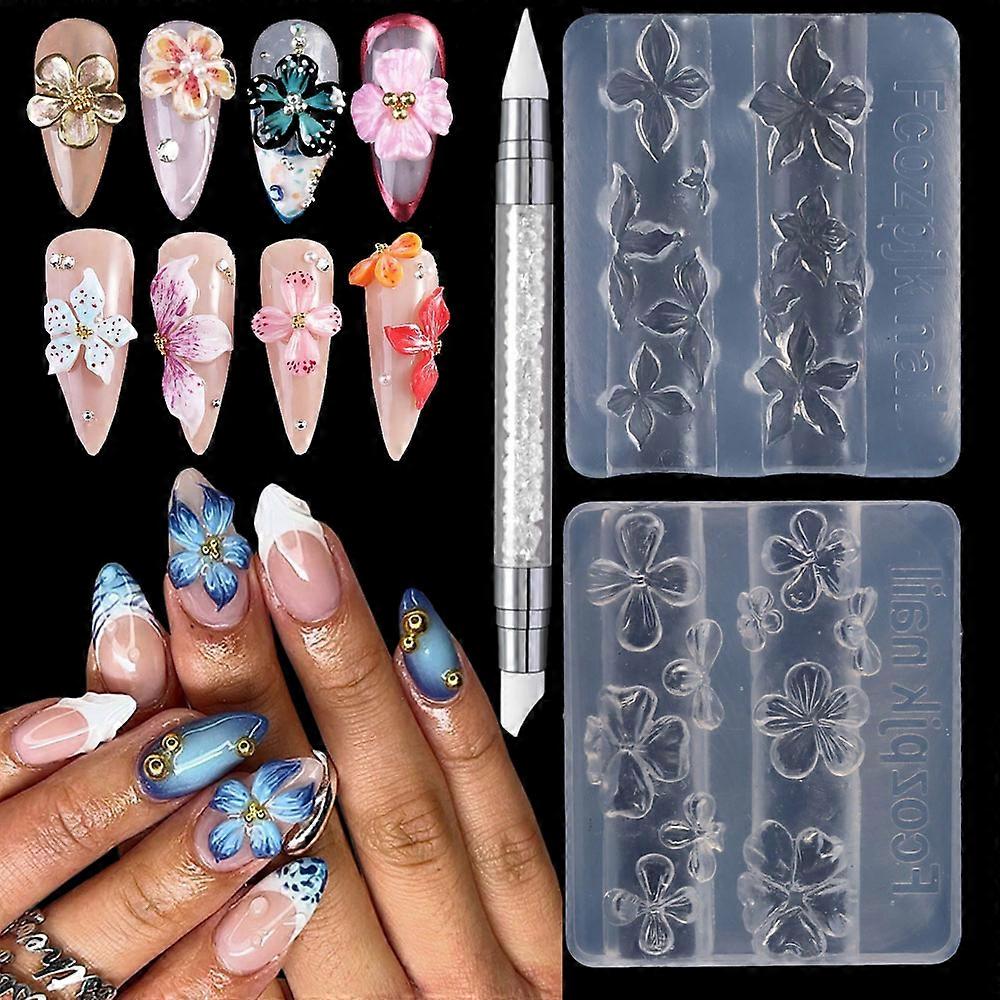 2/3pcs Relief Lily Flowers Nail Carving Mold 3D Silicone Hibiscus Flowers Petals Modeling Templates Clear Resin Epoxy Nail Tools