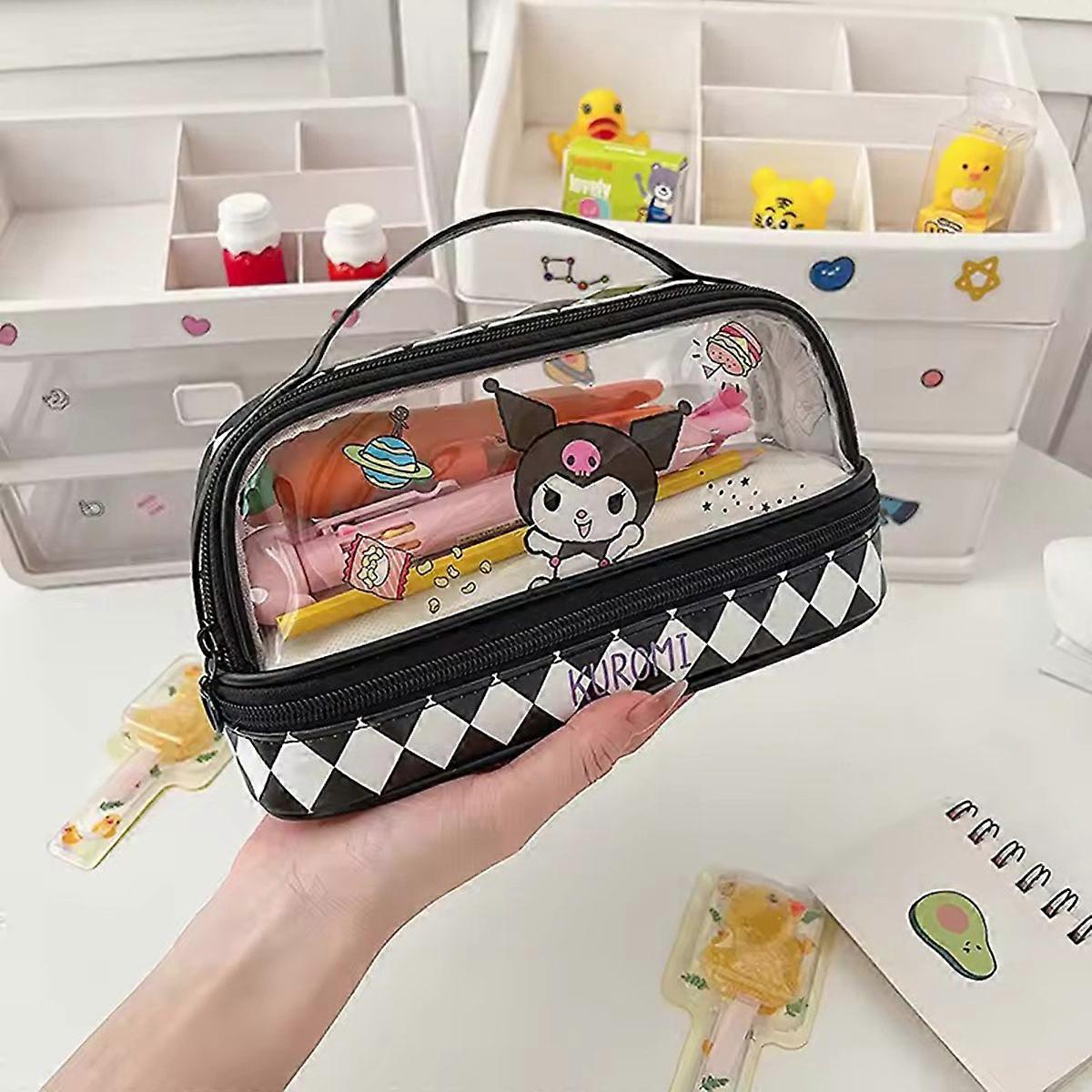 Cute Cartoon Sanrio Hello Kitty Pencil Case Kuromi student Large Capacity Double Layer Multifuntion Portable Pen Bag Stationery