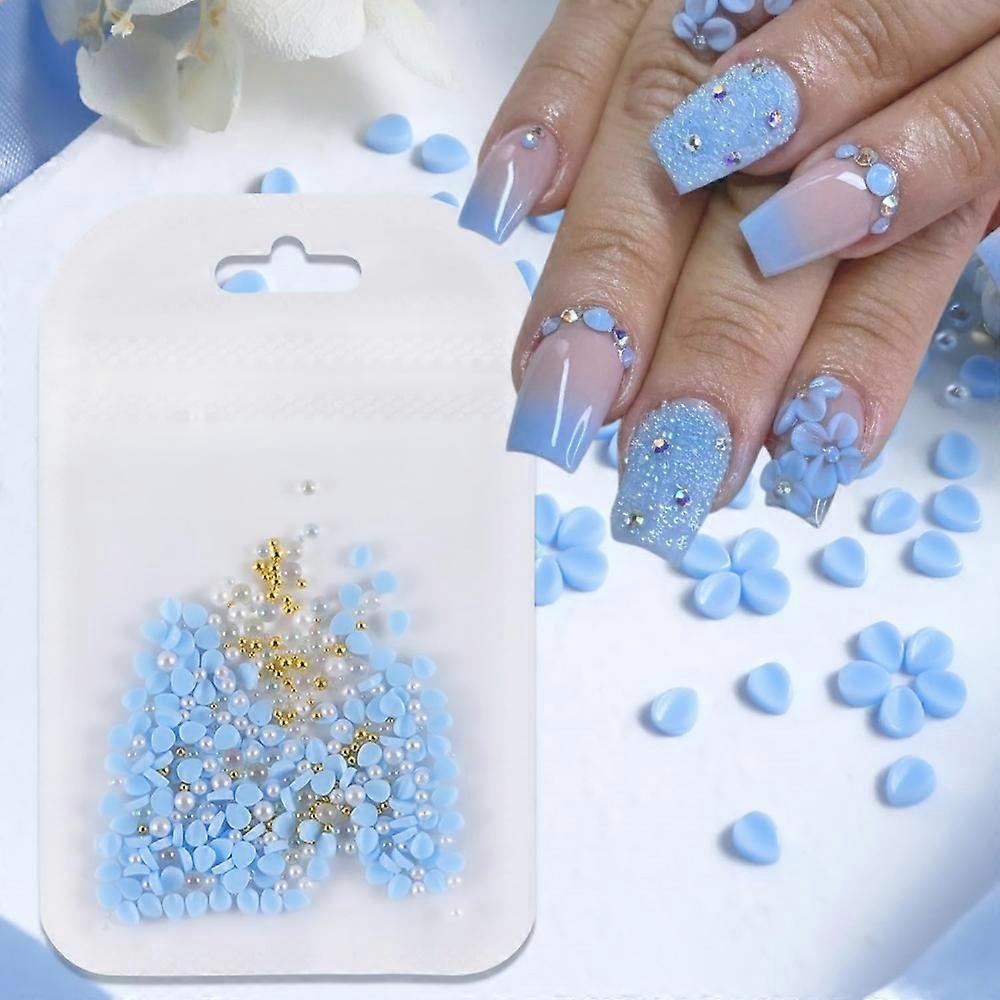 150pcs Blue Pink Carving Petals Floral Nail Charms Mix Gold White Pearl Caviar Beads Nail Parts 5g Acrylic Resin Nail Supplies