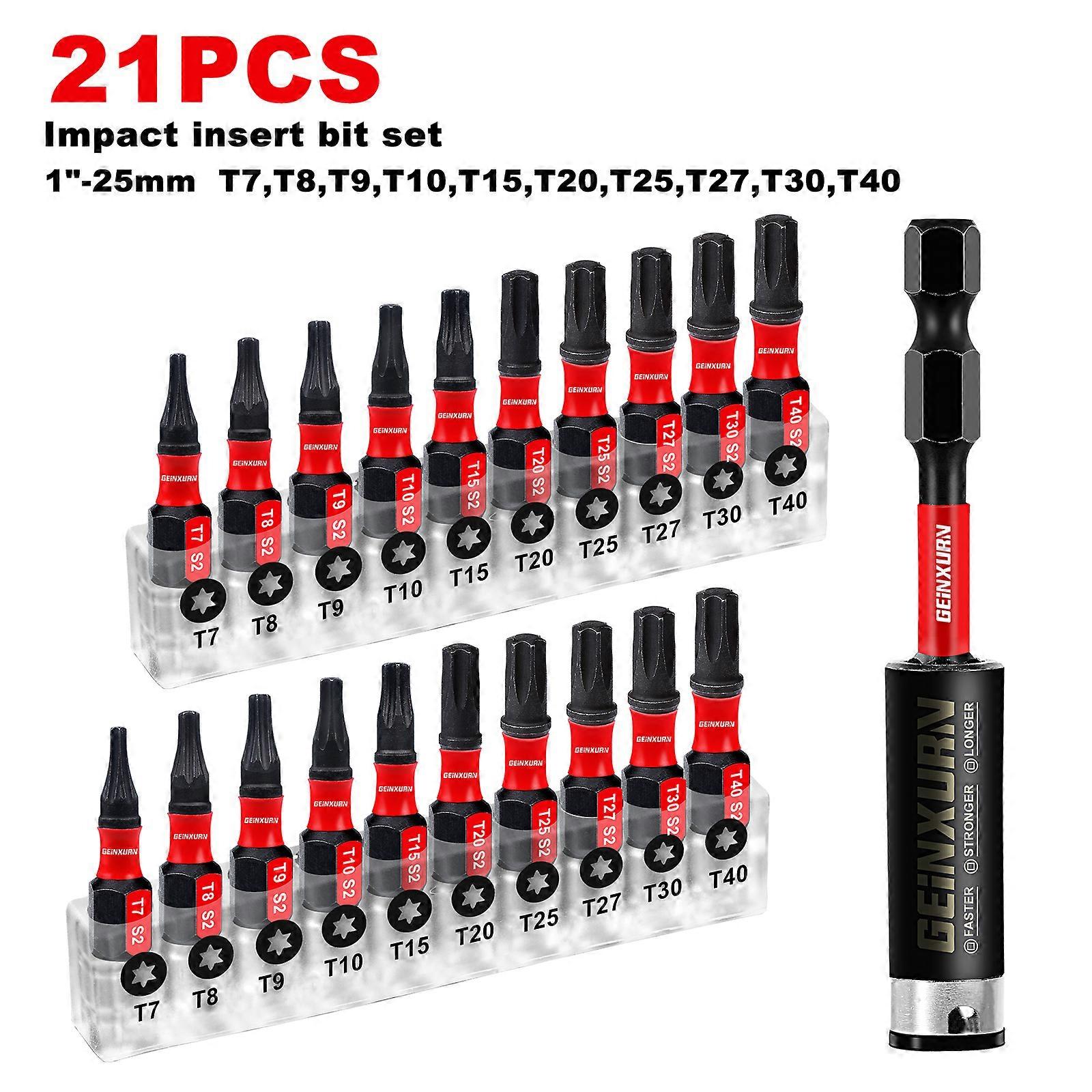 1 Inches T7-T40 Torx Screwdriver Bit Set,Impact Tough Magnetic S2 Alloy Steel Star Bit with Sase