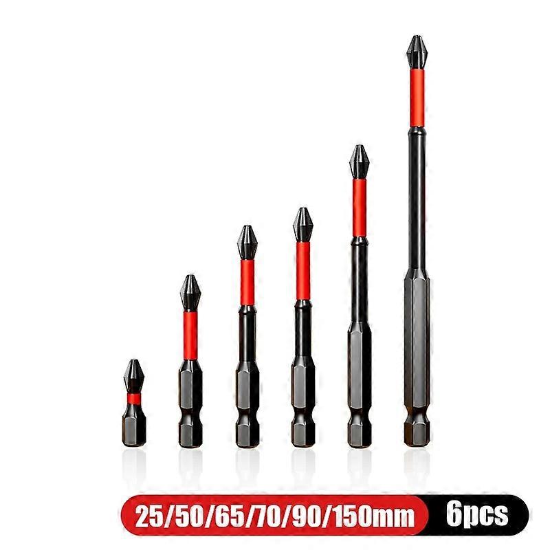6Pcs Waterproof Ph2 Screwdriver Bits Set Non-Slip Impact Batch Head Strong Magnetic Cross High Torque Hardness Screw