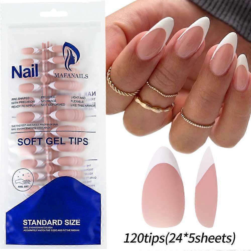 120/150pcs Matte White French Gel Nail Tips Medium Almond Nude Press On Nails 0.75-2.6cm Pink/Nude ABS Soft Gel Nail Flase Tips
