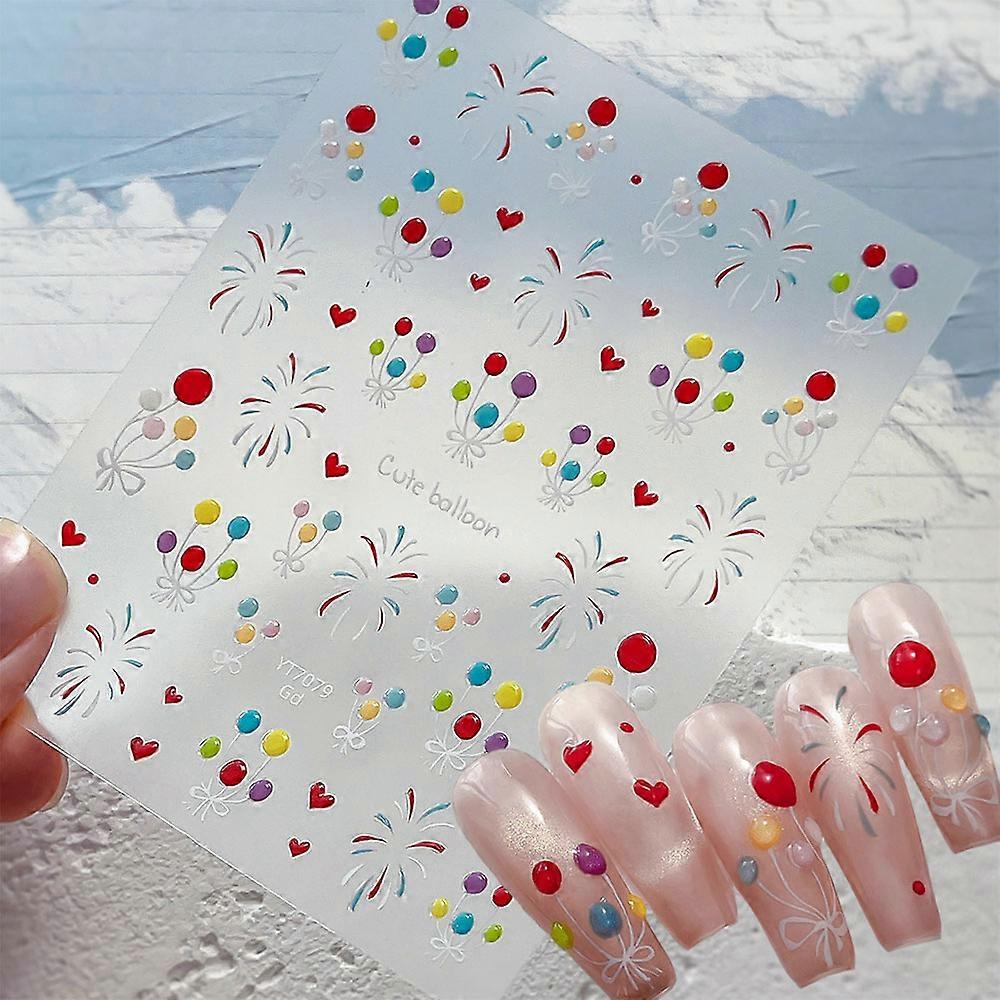 1PC 5D Cute Balloon Heart Fire works Nail Stickers Colorful Blooming Fire works Nail Decals 8*5cm Self-Adhesive Nail Decoration