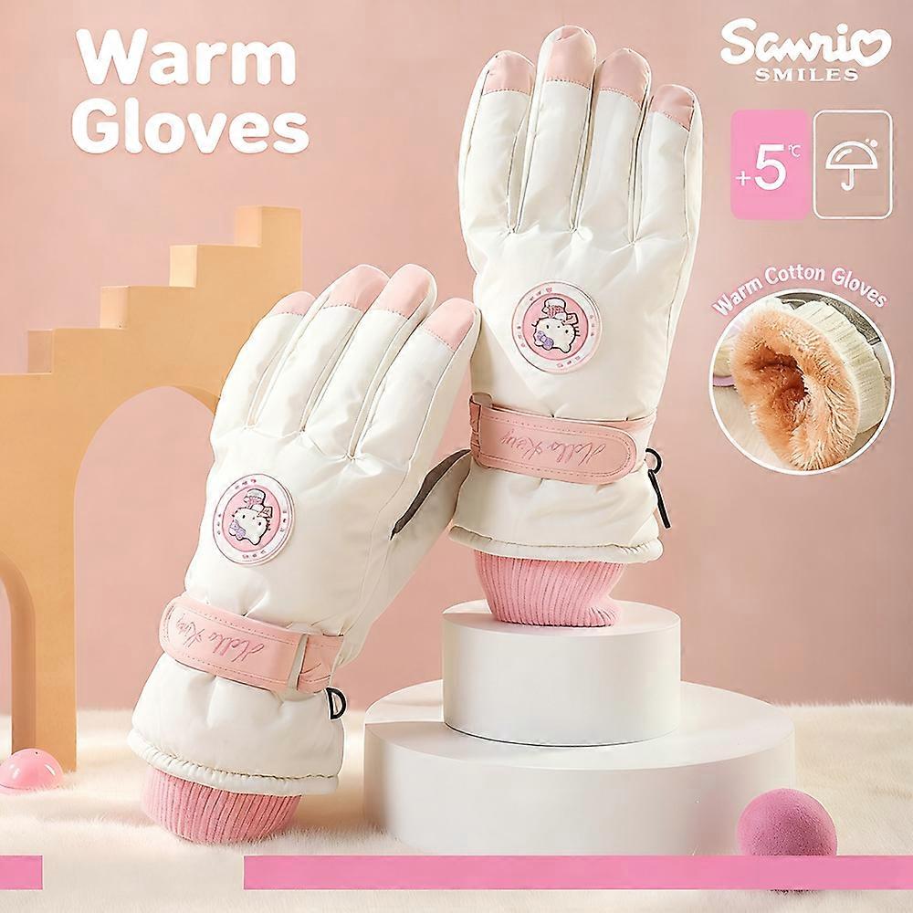Sanrio Fashion Ski Gloves Kawaii Winter Thick Velvet Girls Cycling Gloves Warm Cotton Gloves Touchable Screen Anime Figures