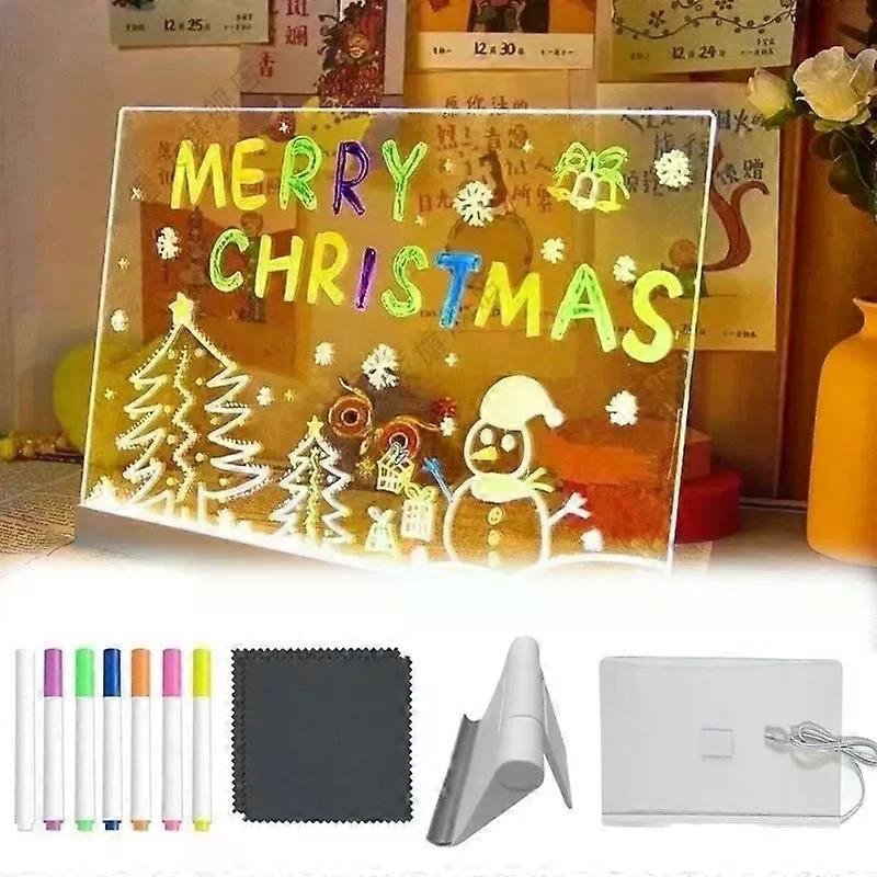 LED Night light up acrylic message board Erasable USB Children's Drawing Board DIY for Birthday Gifts Bar Advertising Boards