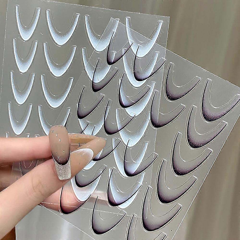 2pcs 5D Relief White+Black French Line Nail Stickers Gradient Curve Stripe Lines French Nail Decals French Manicure Nail Decora