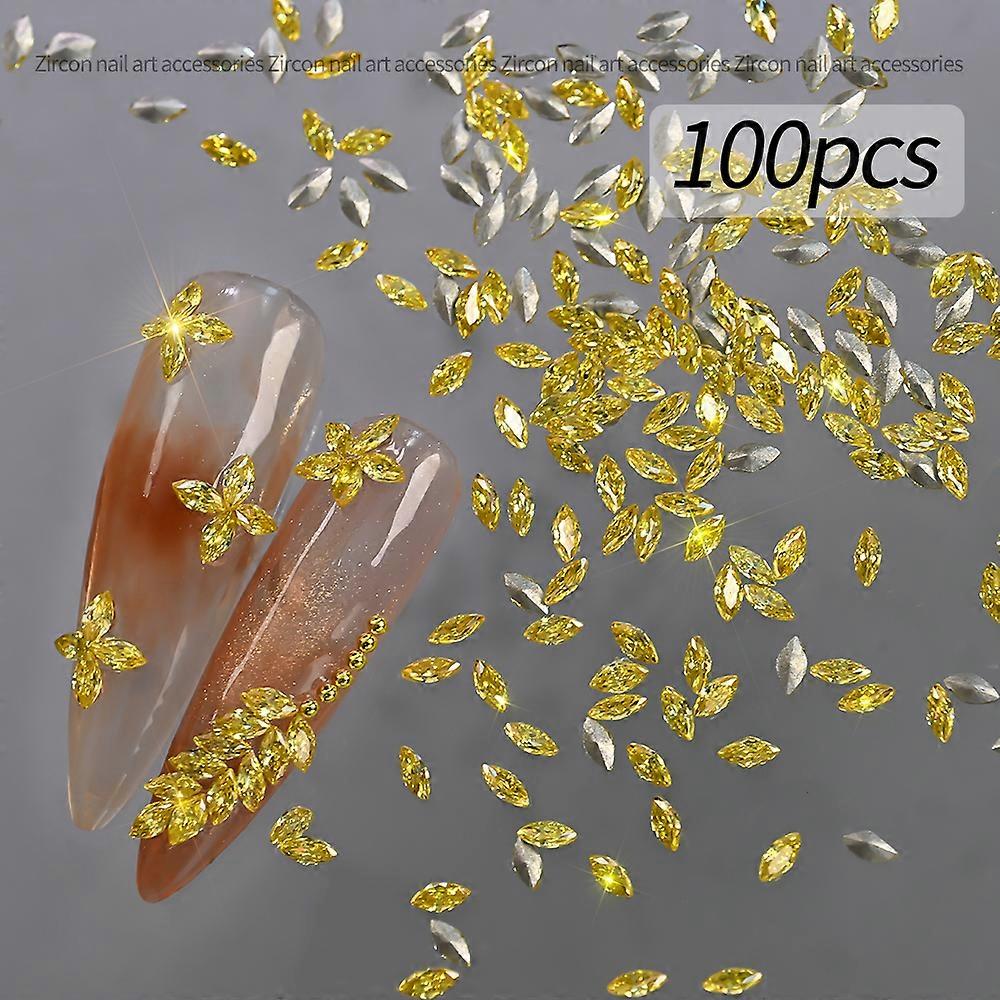 100Pcs 3mm Sparkle Golden Zircon Nail Rhinestones 3D Oval Horse Eye Nail Crystal Gems Flatback Diamonds Manicure Nail Supplies @