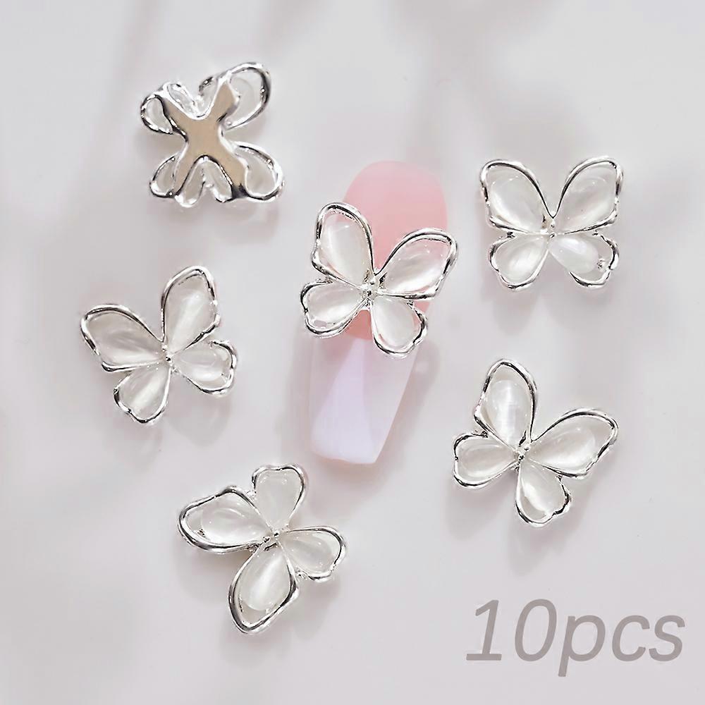 10/20Pcs Siver White Crystal Butterfly Nail Charms 3D Hollow Cats Eye Alloy Zircon Nail Gems Luxury Diamond Butterfly Nail Charm