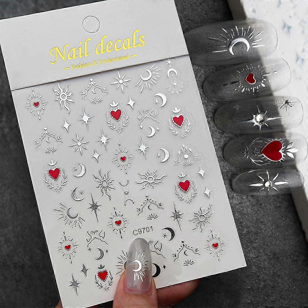5D Bronzing Gold/Silver Love Heart Nail Stickers Laser Stars Sun Moon Nail Art Decals Self-Adhesive Starlight DIY Nail Decor Y7K