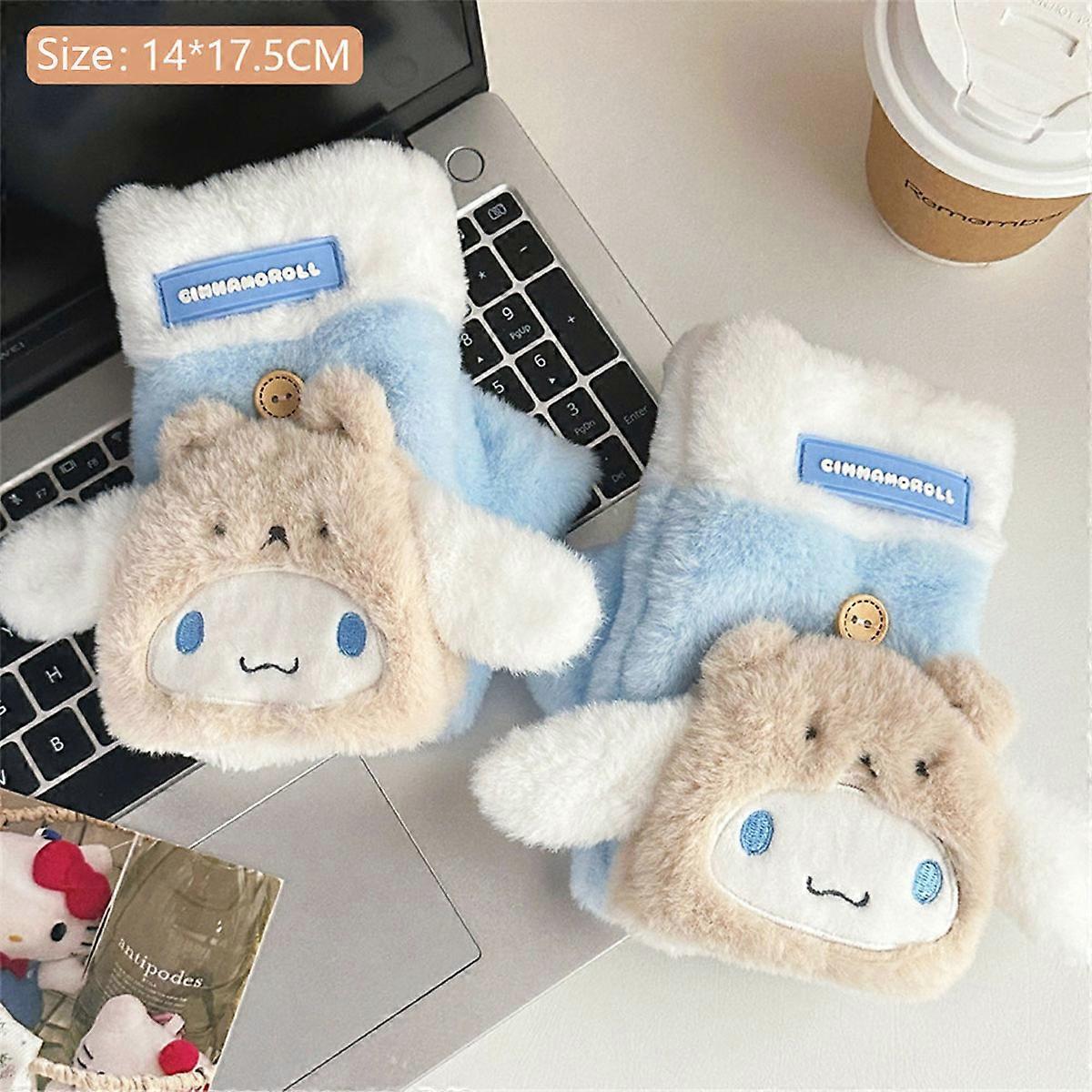 Sanrio Plush Gloves My Melody Kuromi Gloves Flip Half Finger Cold-Proof Glove Screen Touch Warm Gloves Winter Gift