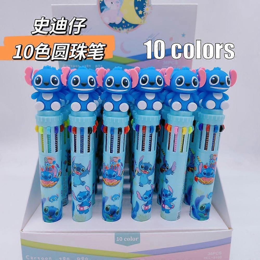 6pcs New Disney Stitch Ten Color Ballpoint Pen, Multi Color Press Pen, High Appearance Styling Color Pen Stationery for Students