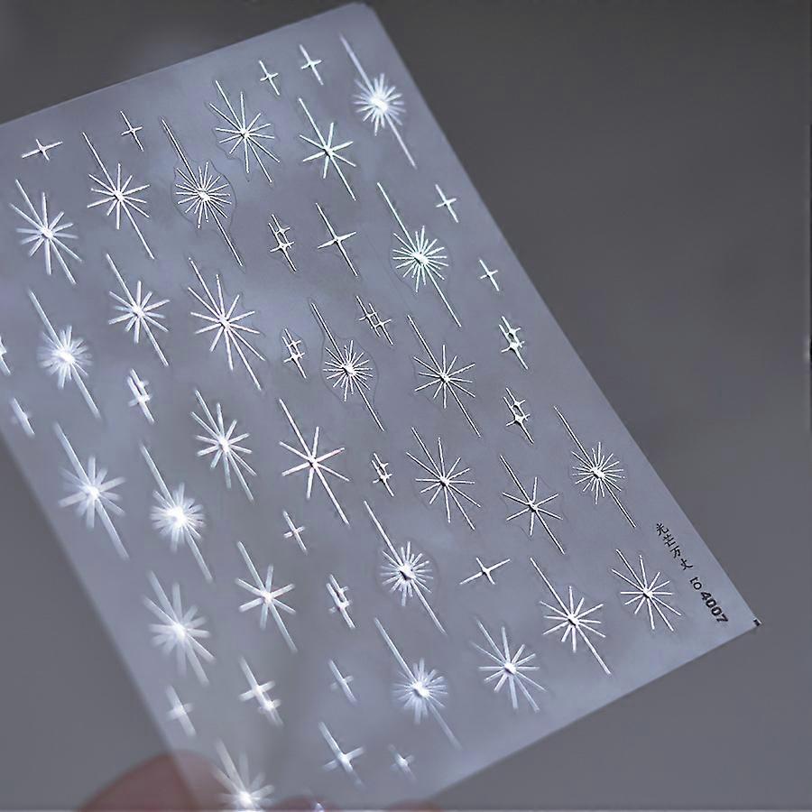 5D Relief Metallic Gold Silver Star NailArt Sticker Sparkle Glitter Starlight Nail Decals 8*10cm Adhesive Star Nail Decora *1pcs