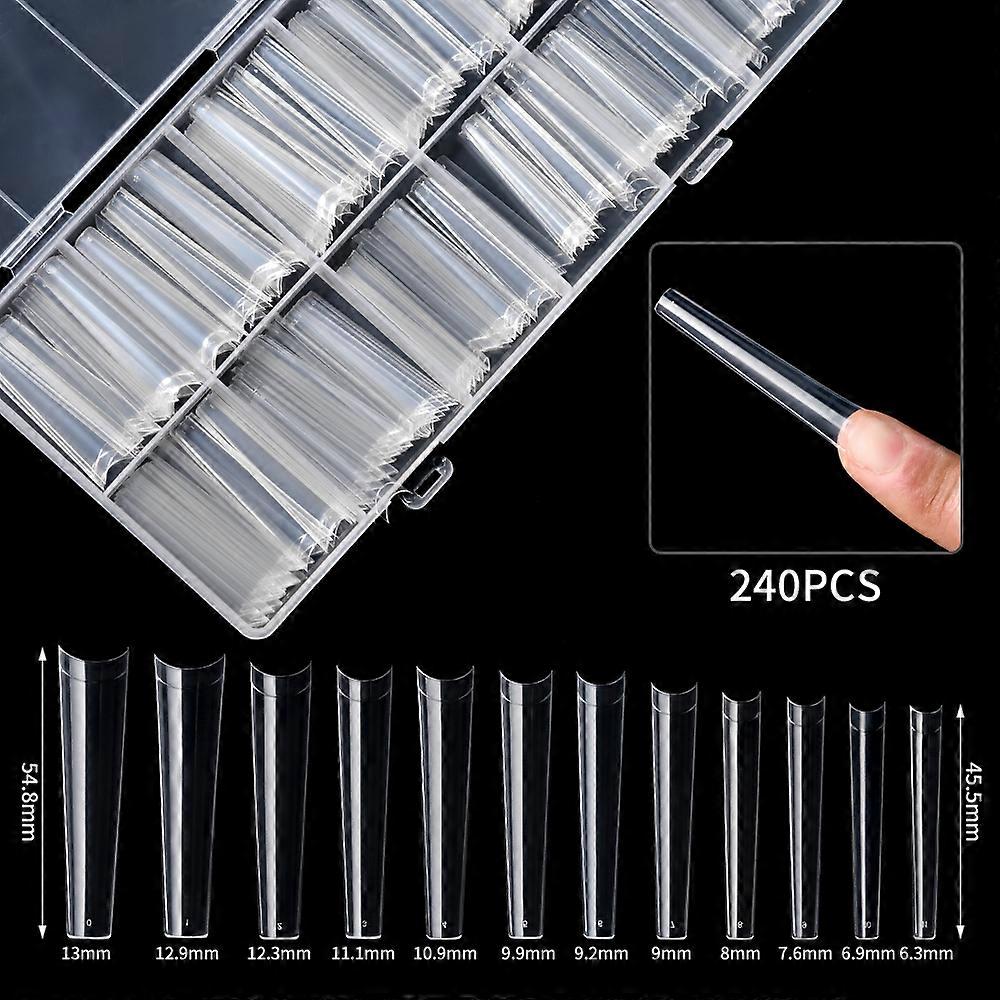 240PCS/Box 3XL Long Clear Coffin Nails Tips Extra Long No C Curve Half Cover Coffin Nail Tips for Acrylic Nails Professional Too