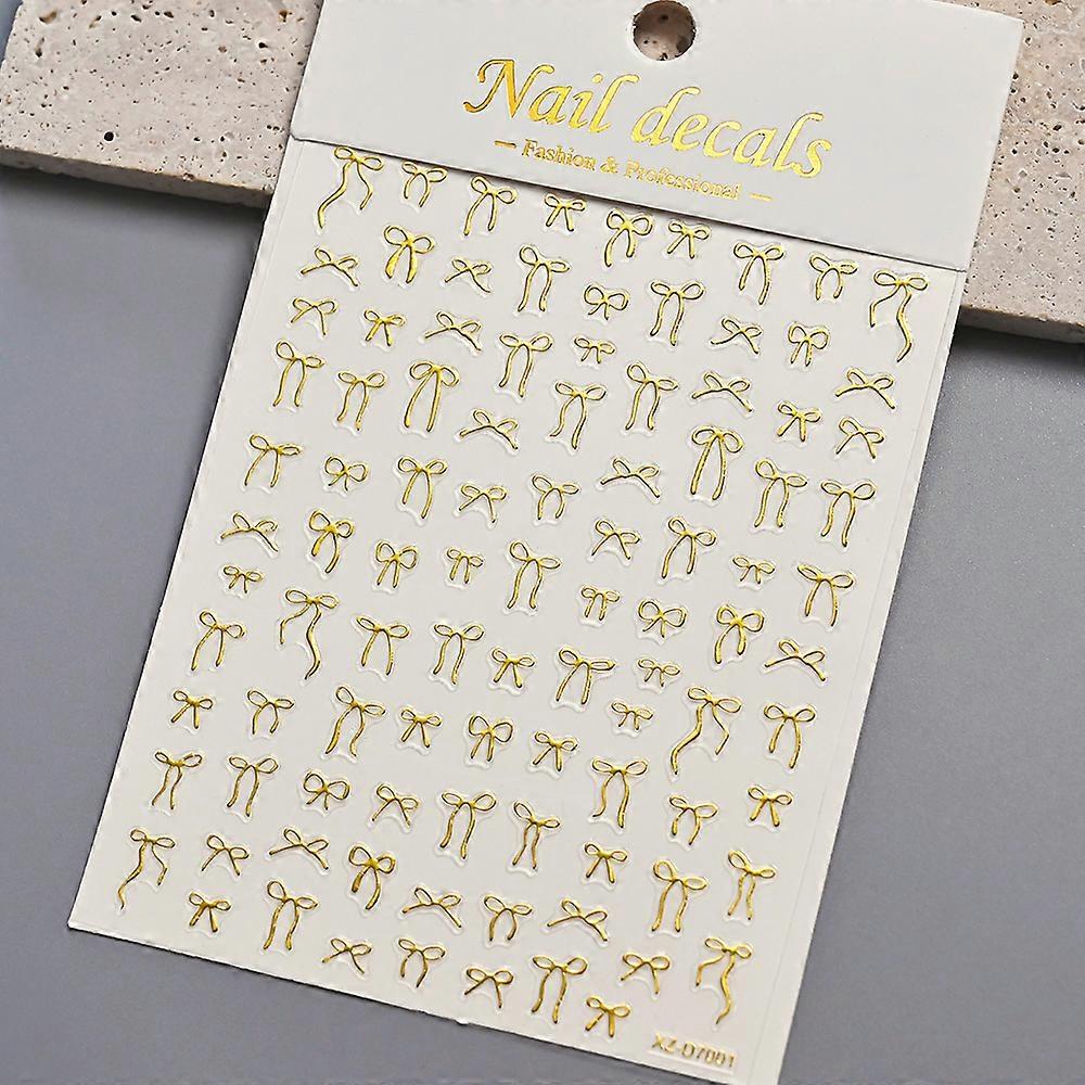 1pcs 3D Bronzing Metal Gold Bow Nail Sticker Cute Bowite Ribbon Nail Art Decals Self-Adhesive Bowknot Manicure Nail Decorations