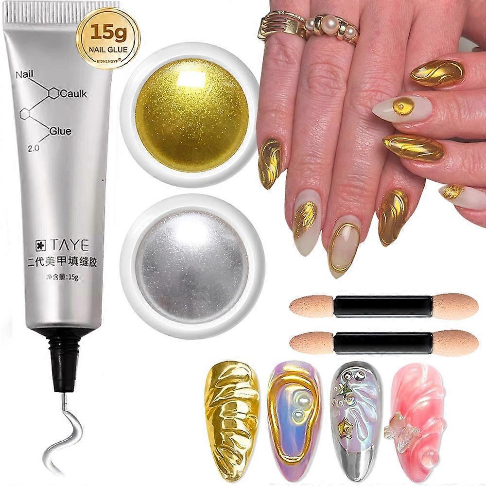 3PCS Christmas Red Green Chrome Nail Powder & 3D Nail Sculpting Gel Mirror Metalic Effect Nail Pigment Christmas DIY Nails YU7