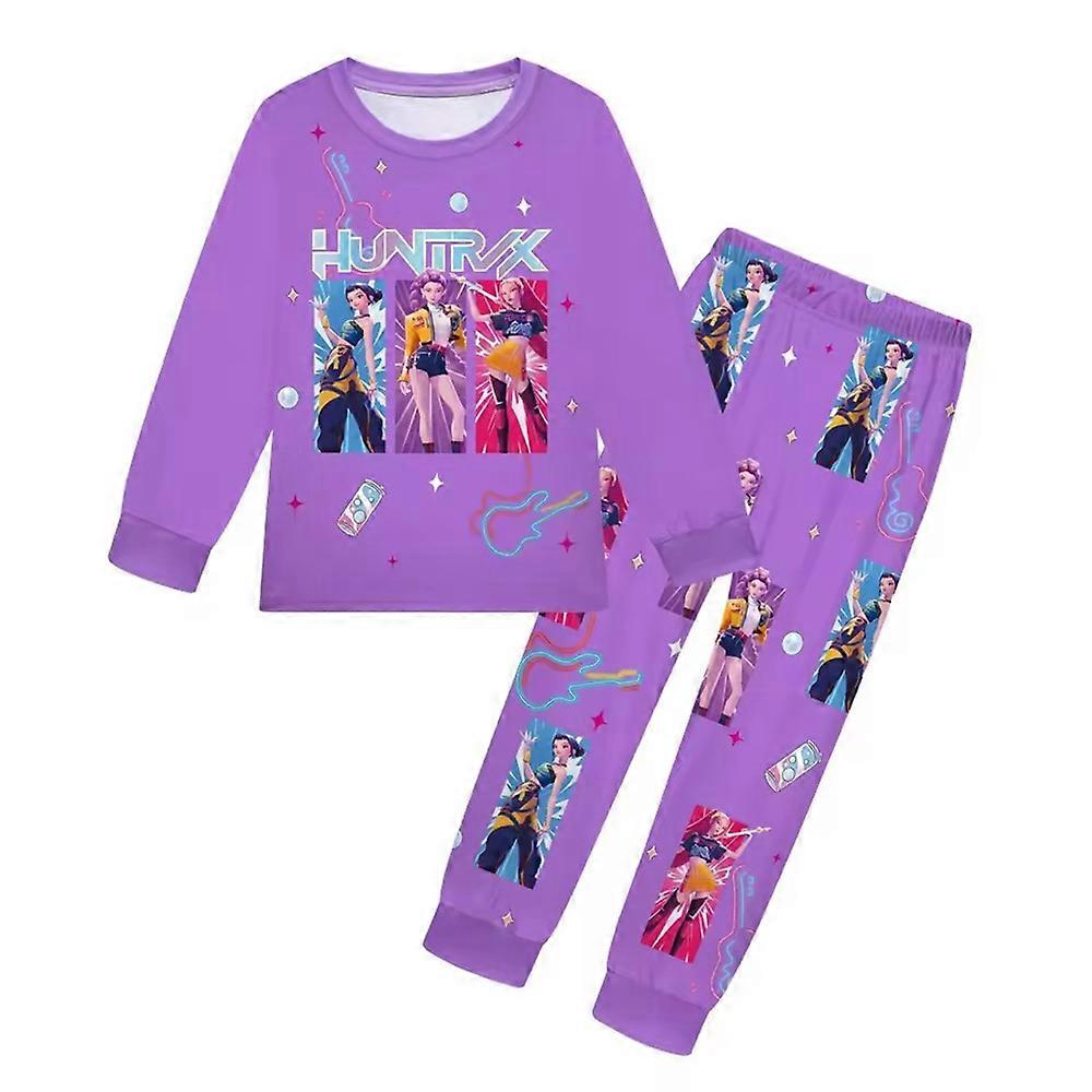 K-pop Huntrix Demon Hunters Kids Pajama Set Baby Girls Daily Nightgowns Rumi Mira Zoey Girls Long Sleeve T Shirt+Pants 2pcs Set