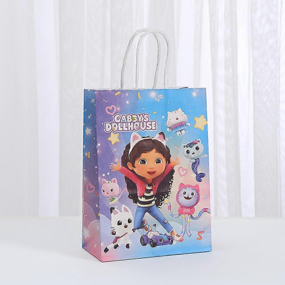 24pcs New Hot Selling Gabby Dollhouse Gift Bag Anime Character Kraft Paper Handbag Candy Snack Birthday Gift Packaging Bag