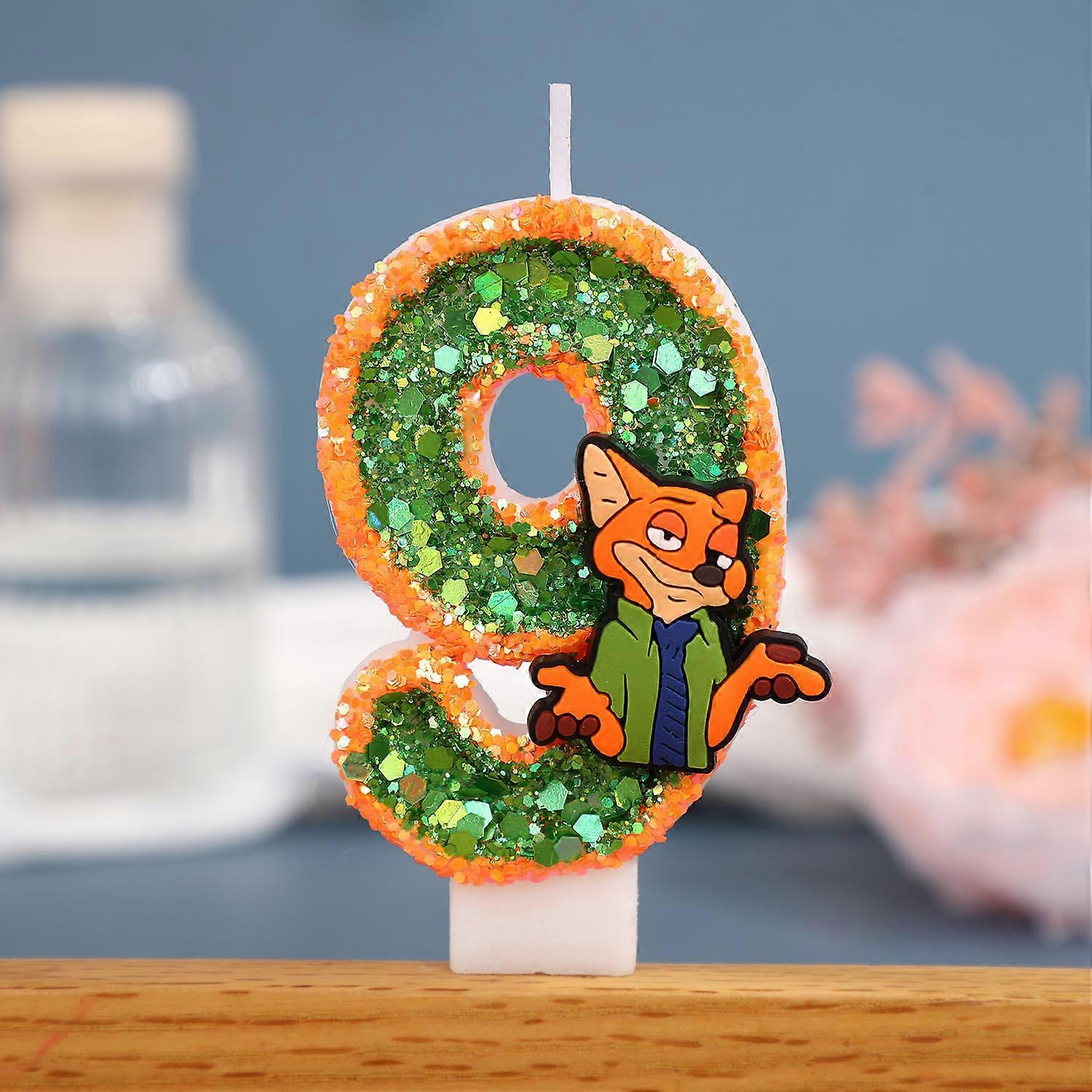 Cartoon Zootopia Nick Creative Digital Candles Birthday Celebration Cake Candles Cartoon Glitter Cake Ornament