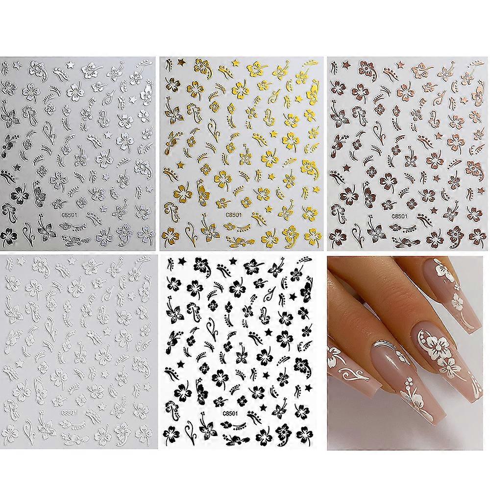 4/5/6/8pcs Hibiscus Flower Nail Stickers 3D White/Black/Gold/Silver Hibiscus Petal Nail Decals 8*10cm Self-Adhesive Hibiscus Sli