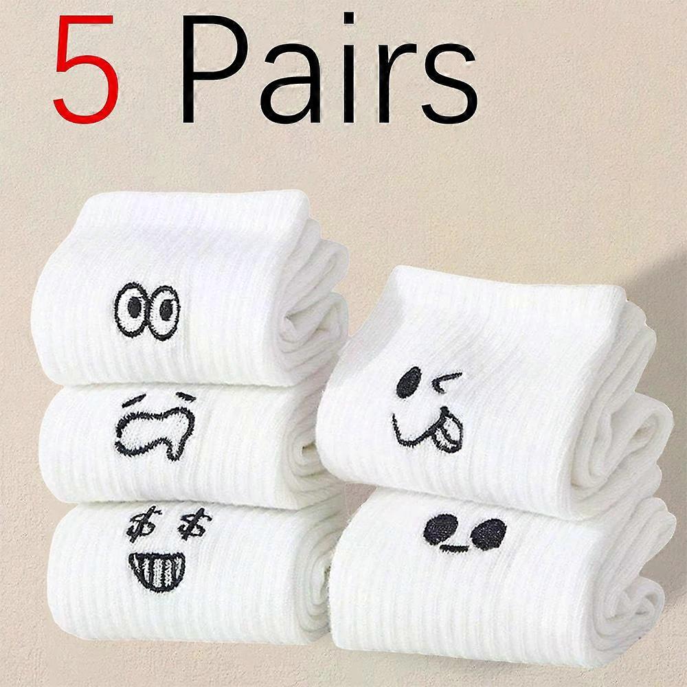 5/10/20 Pairs Men's female White Cartoon Socks Trendy Versatile Expression girl Socks Soft Breathable Comfortable Casual Socks