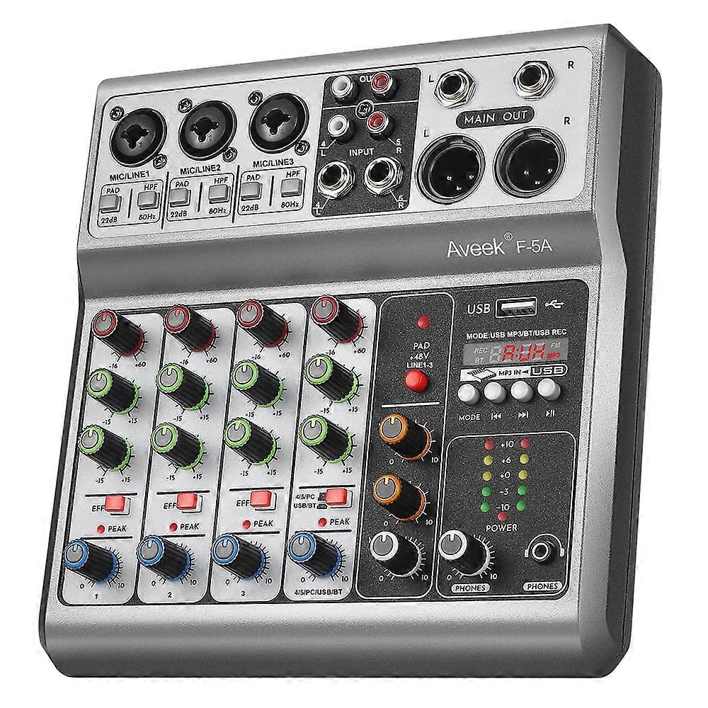 Aveek Professional Audio Mixer,Sound Board Mixing Console with 5Channel Digital USB Bluetooth Echo Delay Effect,Input 48V Stereo