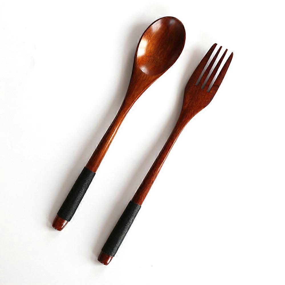2Pcs Dinnerware Set Wooden Large Spoon Fork Cutlery Set Japanese Style Long Handle Serving Salad Scoop Tableware Kitchen Utensil