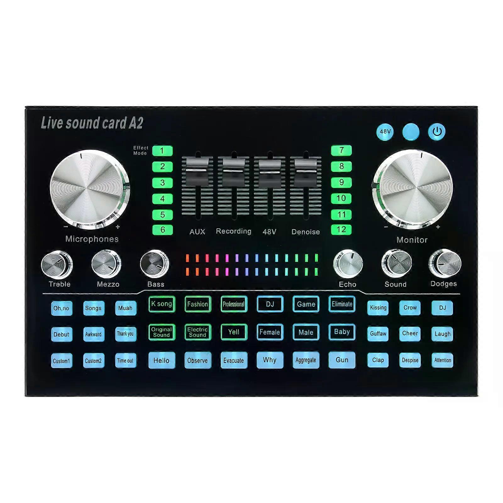 A2 Live Sound Card With 48V Power Supply Multifunctional Audio DJ Mixer Microphone Volume Adjustment For Live Streaming Singing