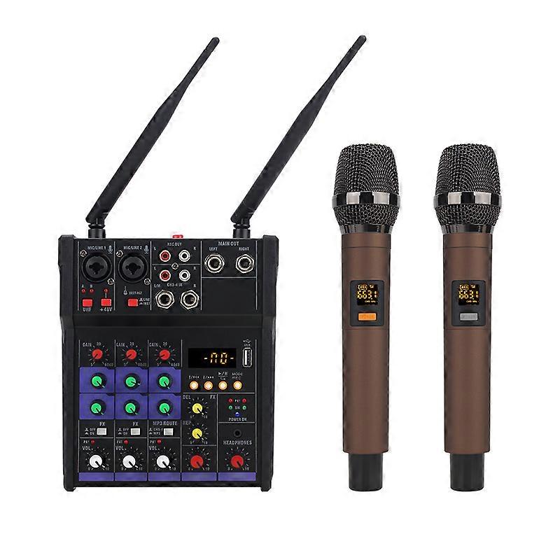 Professional 4 Channels Audio Mixer Built-In 2 Handheld UHF Mic Wireless Microphone 150M With 16 DSP Mixing Console for DJ PC